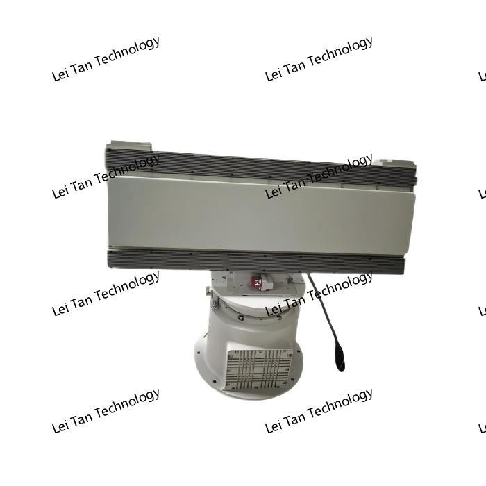 Terdiri dari satu array radar, satu platform rotasi mekanik, dan satu adaptor daya, radar ini dirancang untuk mendeteksi, peringatan,dan indikasi target drone sipil mikro/kecil di daerah kunci seperti perbatasan, perimeter, bandara, dan pangkalan. dapat dengan akurat memberikan azimut target, jarak, ketinggian, dan informasi kecepatan.